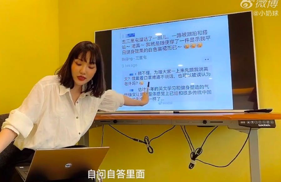 Weibo user Xiaonaiqiu giving a lecture on Versailles literature and how to create it. (Source: screenshot)